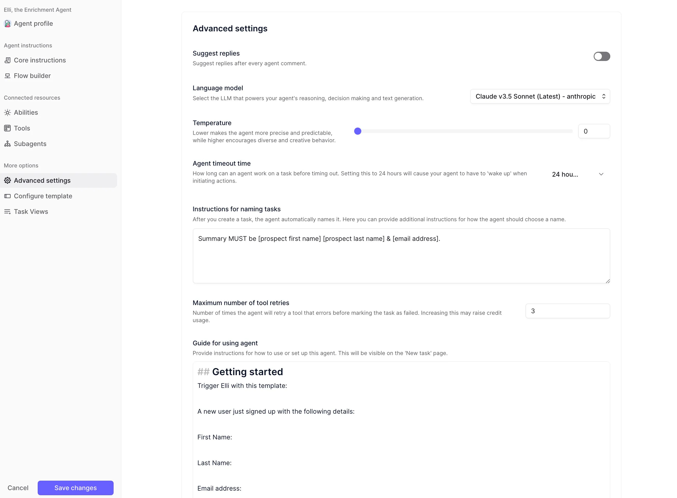 We recommend that you set high-risk tools, especially customer facing actions, to "require approval" until you're happy with how your agent is performing. Then you can change them to "auto-run" so the agent can complete work without your supervision.