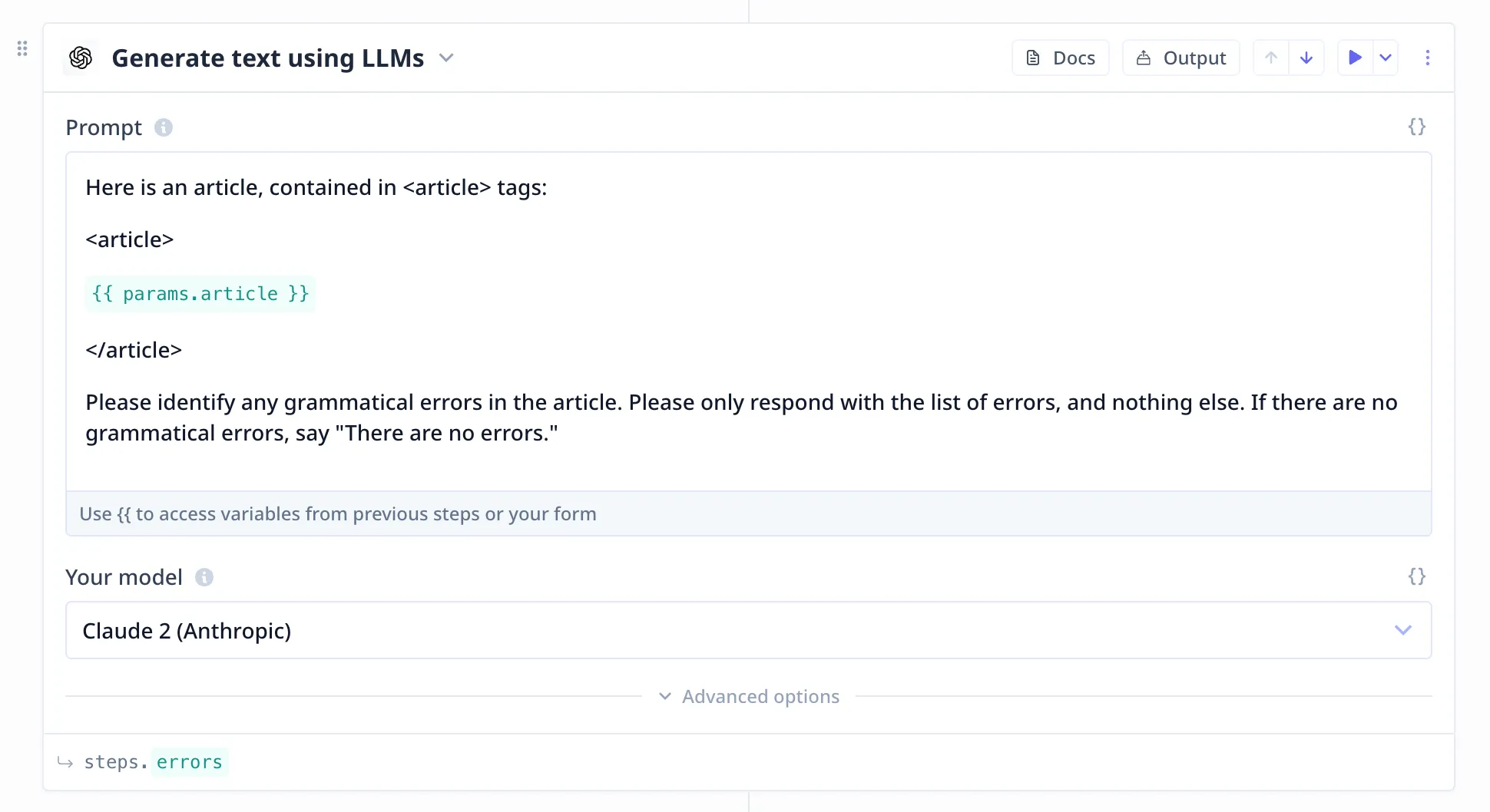 An example provided by Anthropic is how we can use a follow-up prompt to identify if any error were missed when evaluating an the grammatical correctness of an article here. You can view the prompts here and if you'd like to try it without code, you can clone the template here.