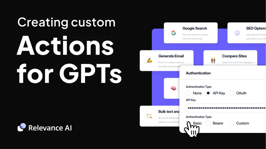 We automatically handle your custom action's OpenAPI schema, Authorization, Privacy Policy and more.