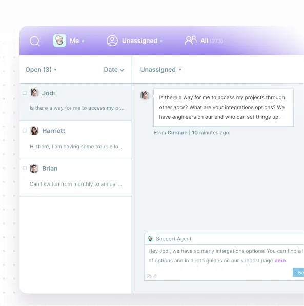 Automatically handles support queries using intelligent sub-agent routing.
