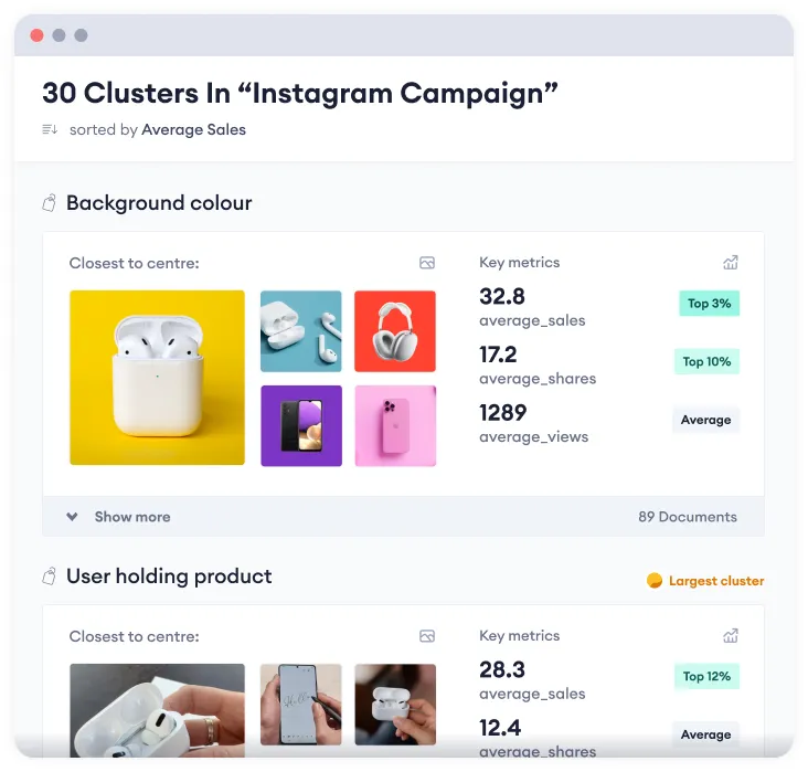 Dive deep into different clusters with our purpose-built clustering dashboard.