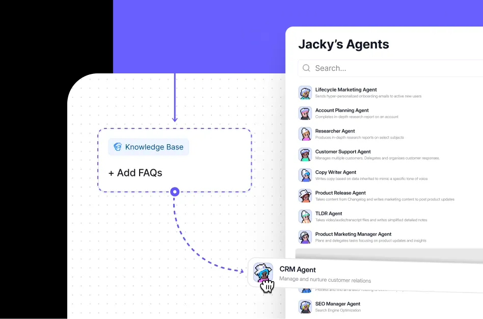 Nope. Use it for content writing, lifecycle marketing, sales messaging, onboarding workflows—anything your agents need to reflect your team’s expertise.