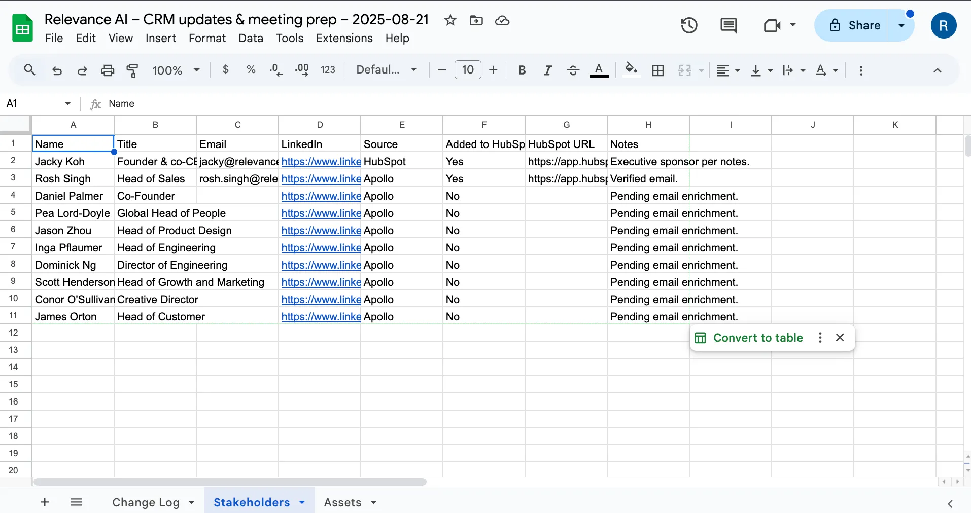 After that, MRP manager asked the Apollo Assistant to get all of the key stakeholders and decision makers from Relevance. It was able to retrieve a much more accurate and recent list than what was already stored in the CRM about them.