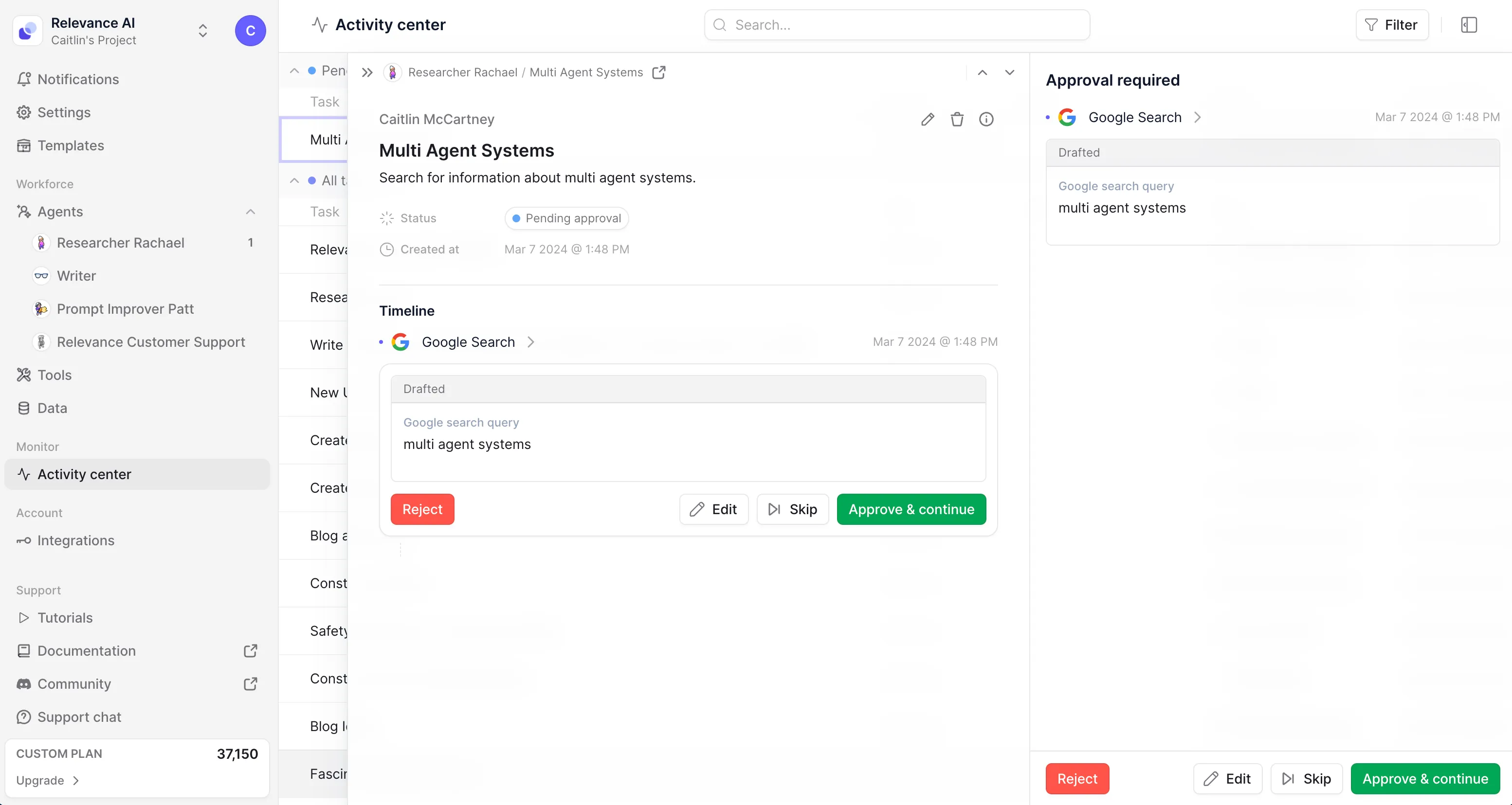 What: We've overhauled the Activity Centre in our platform, turning it into a centralized hub with real-time dashboards and robust filtering capabilities for all important information about your agents and tasks. This powerful command centre provides an unprecedented level of visibility and control over your AI workforce's activities, making Relevance the world’s first project management platform for AI agent teams.