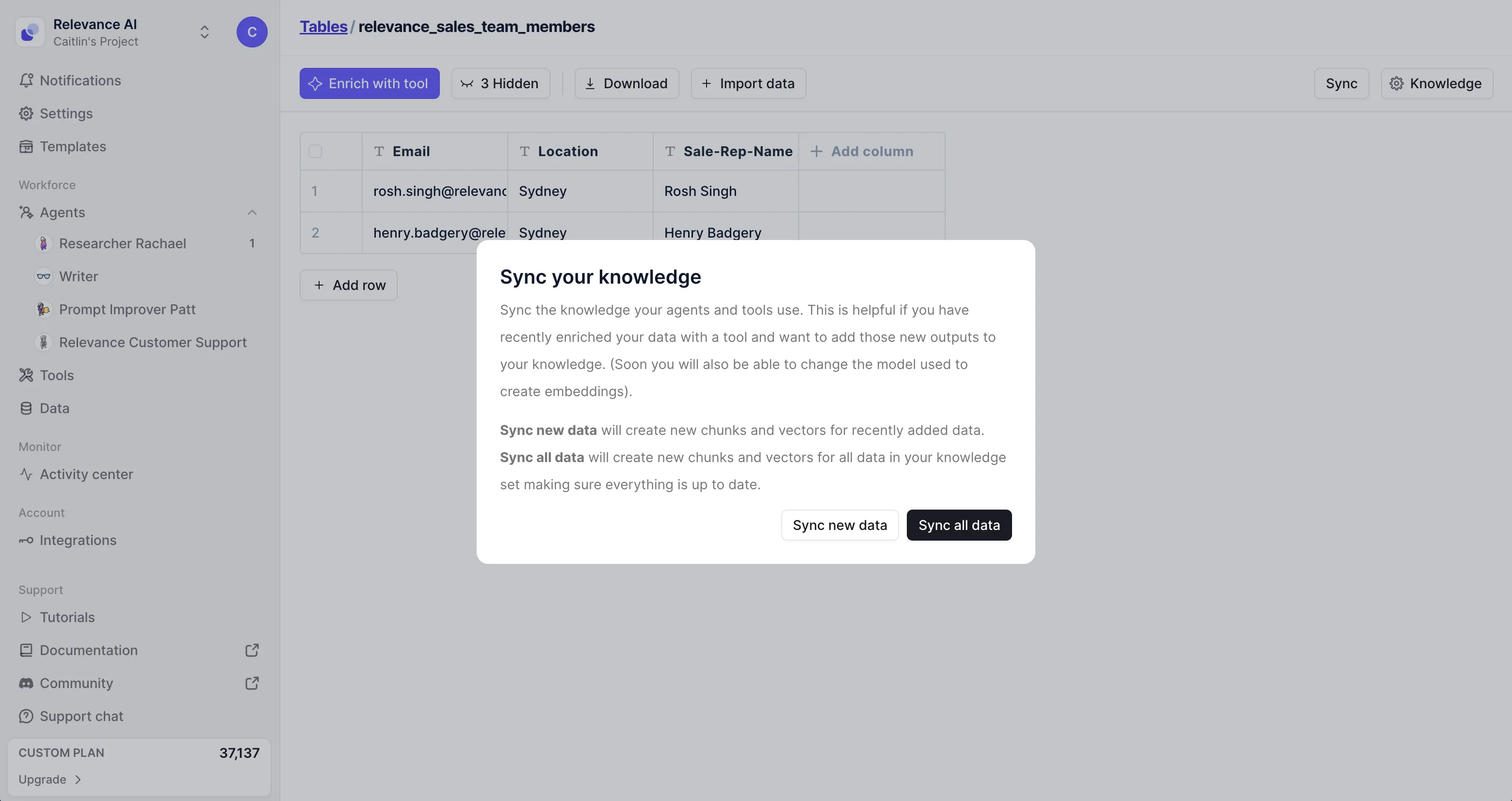 What: We've added a new "Sync" button to your knowledge tables, allowing you to refresh the vector embeddings for new or updated data. Vector embeddings power our knowledge search functionality.