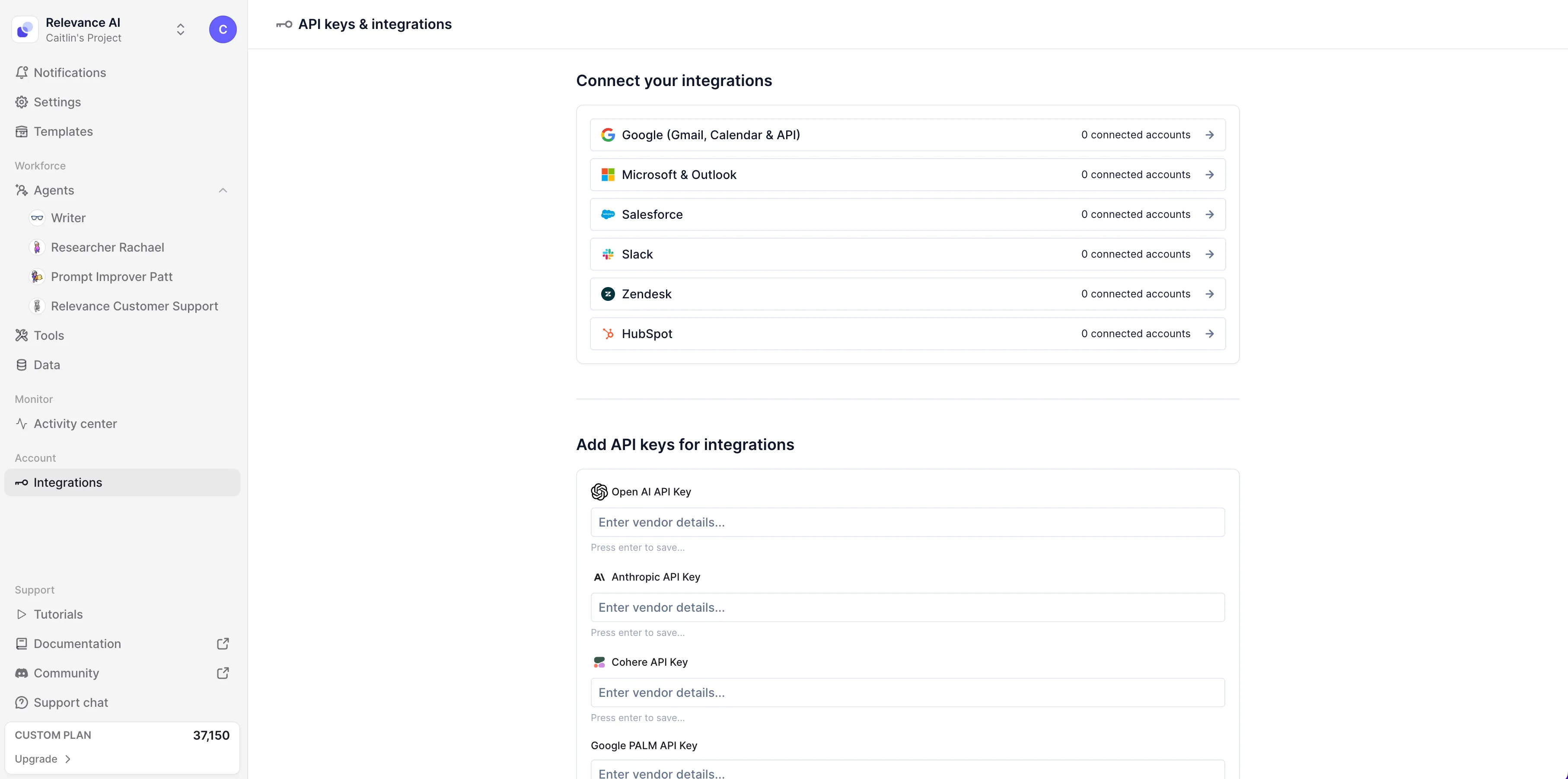 What: We've introduced a dedicated Integrations page that serves as a centralized hub for connecting all the accounts and API keys needed for various integrations within our platform. This new page provides an organized approach to managing your integration credentials and settings.