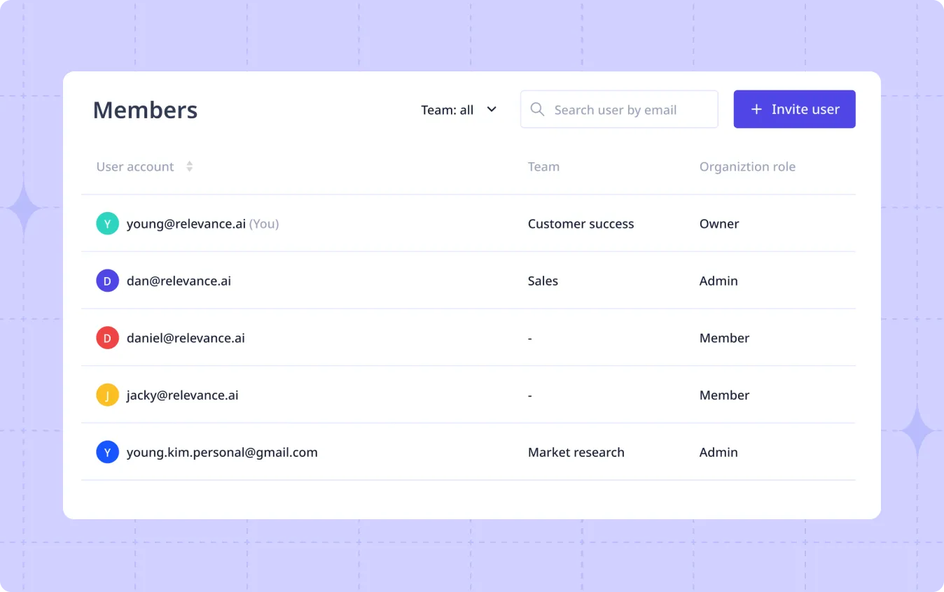 Your Project Information is confidential, even from Relevance AI. We are SOC 2 Type II compliant. Read more about Relevance AI Security.
