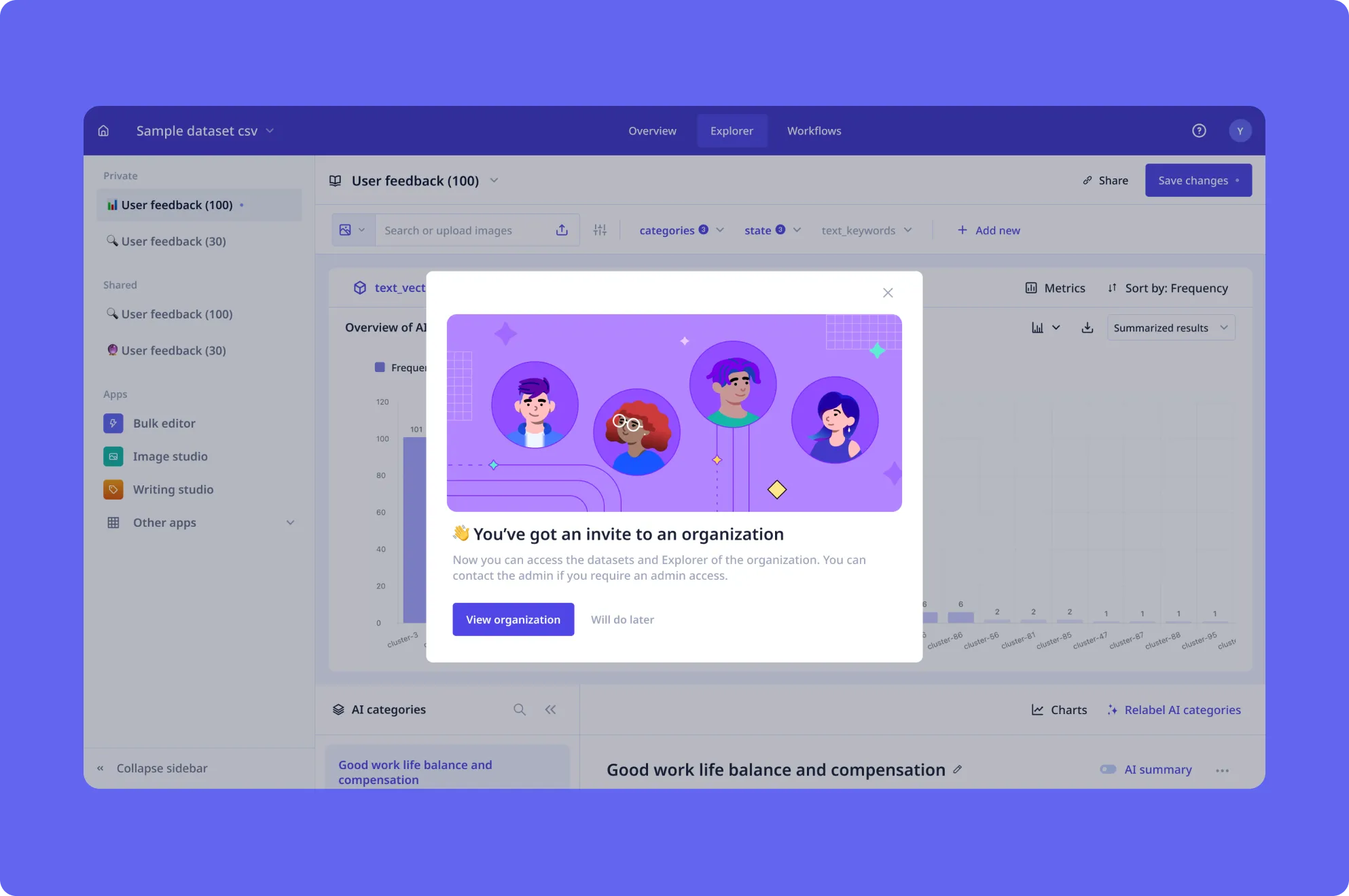 If you're exploring Relevance AI for the first time or discovering new features, we'll quickly guide you to start doing great work immediately.