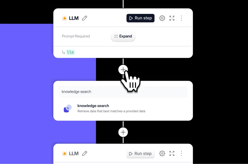 Our no-code tool builder allows you to distill your processes into structured flows powered by LLM prompts, Flow control all in a easy to use drag and drop canvas.